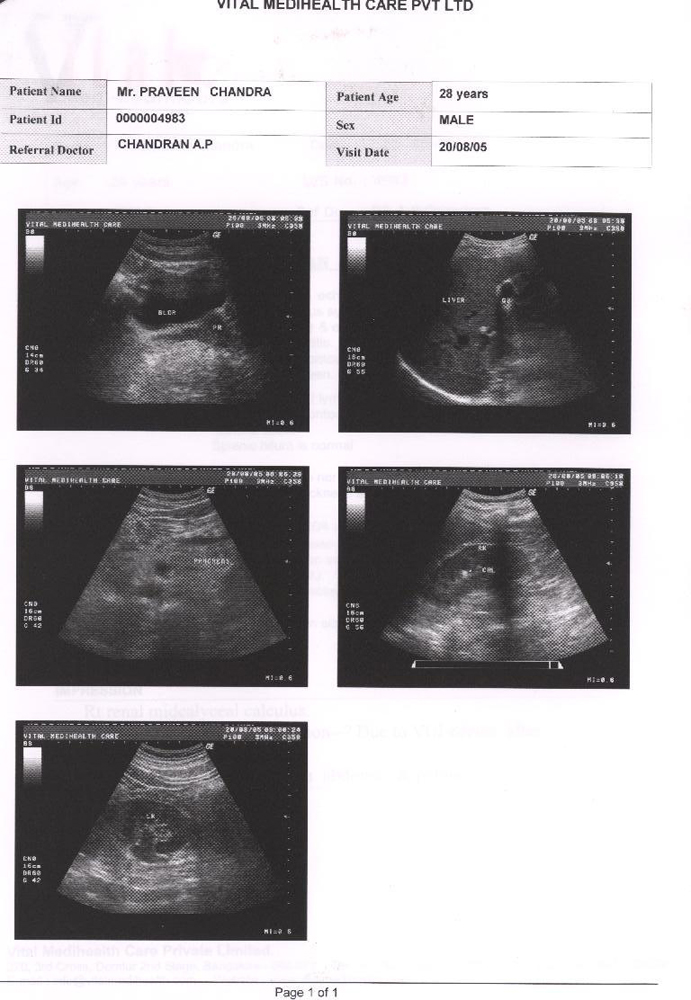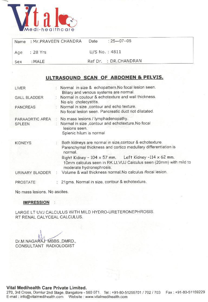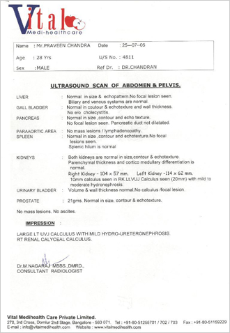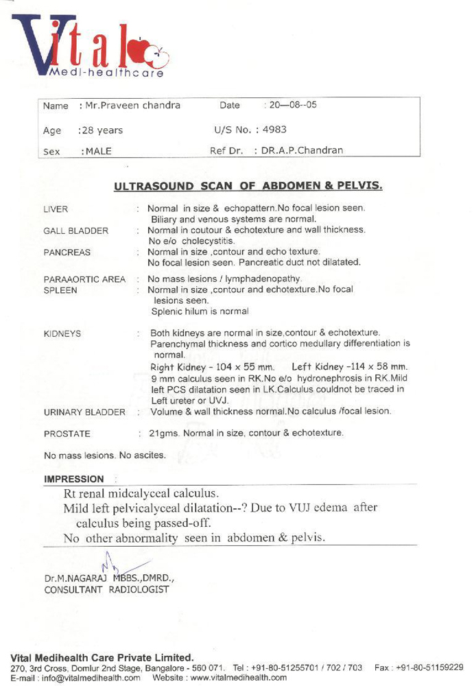 Condition of patient in beginning of Homoeopathic treatment for Kidney Calculus